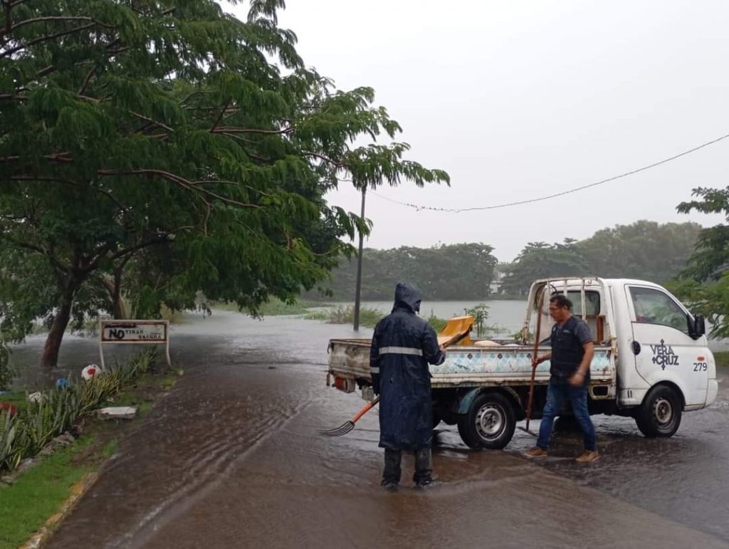 Camioneta cae en socavón en la calle Mariano Matamoros esquina J.M. Arrillaga de la colonia Pinos, en la zona norte del puerto de Veracruz.