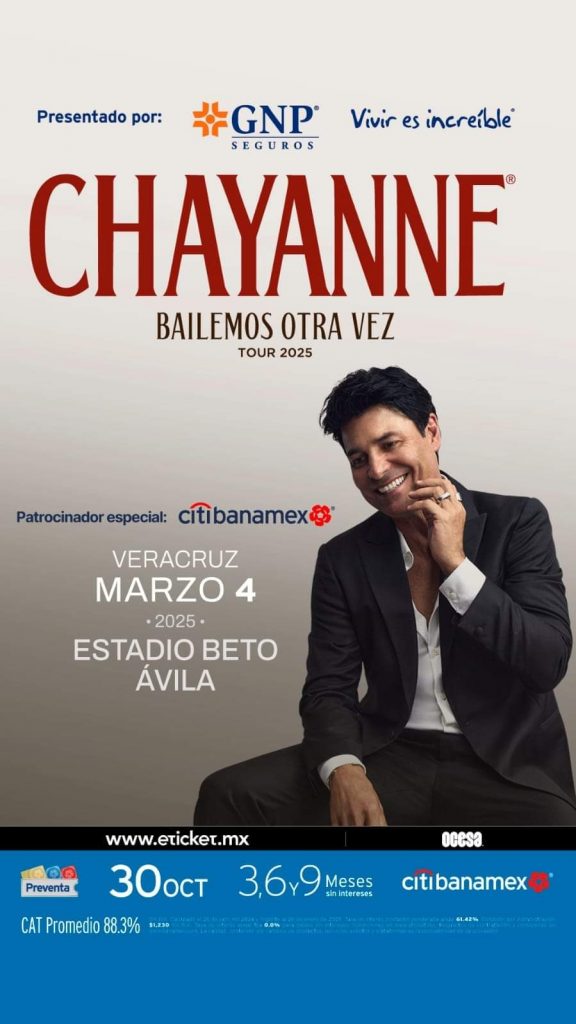 Y para que ningún veracruzano y veracruzana se quede sin ver a Chayanne la preventa del concierto inicia este miércoles 30 de octubre a las 11 de la mañana para tarjetahabientes Citibanamex.