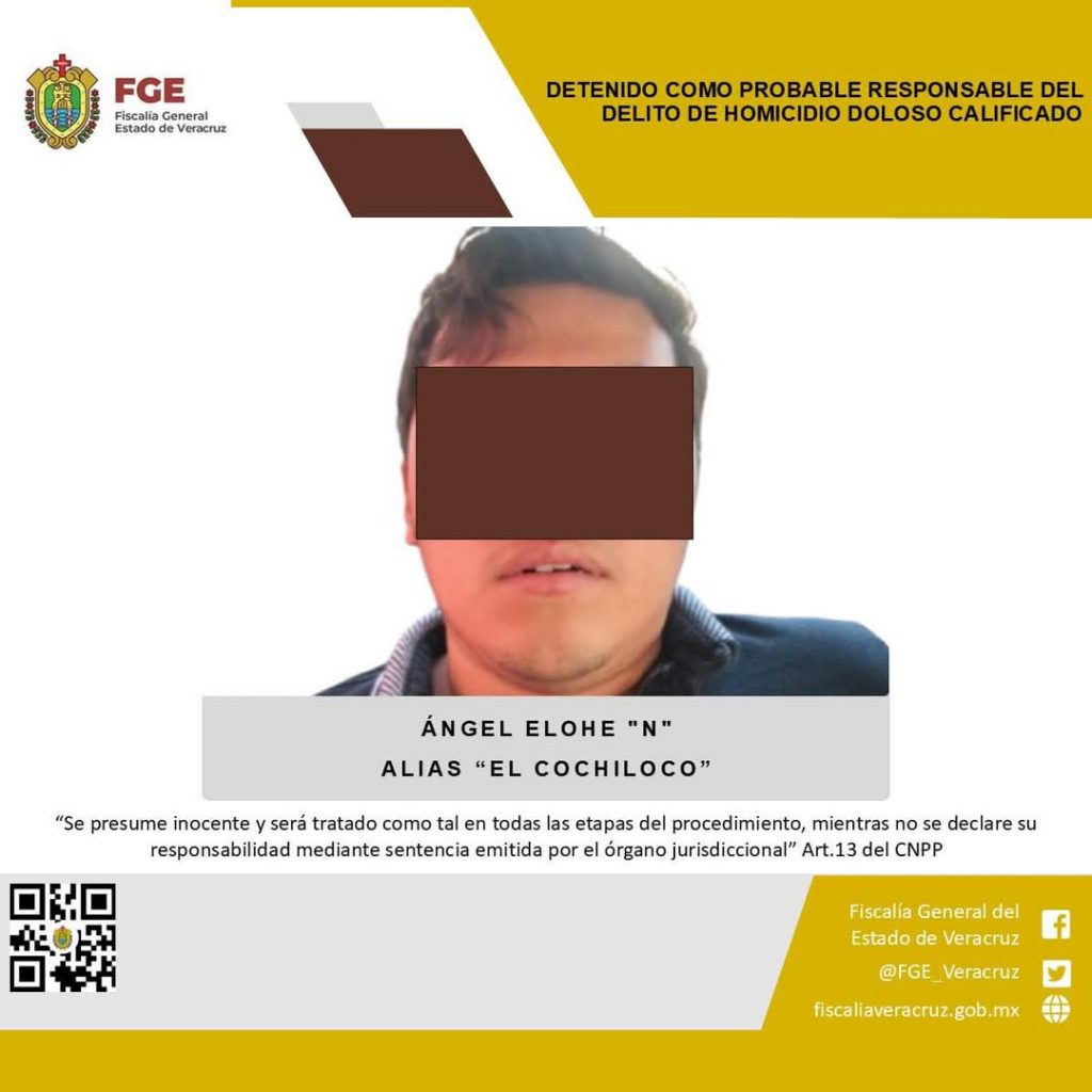 Papantla, Ver., a 27 de noviembre de 2024.-La Fiscalía General del Estado informa que, elementos de la Policía Ministerial de Veracruz, en colaboración con la Fiscalía General del Estado de México, cumplimentaron orden de aprehensión en contra de Ángel Elohe “N” alias “El Cochiloco”, como probable responsable del delito de homicidio doloso calificado, cometido en agravio de dos víctimas menores de edad, de identidad resguardada.