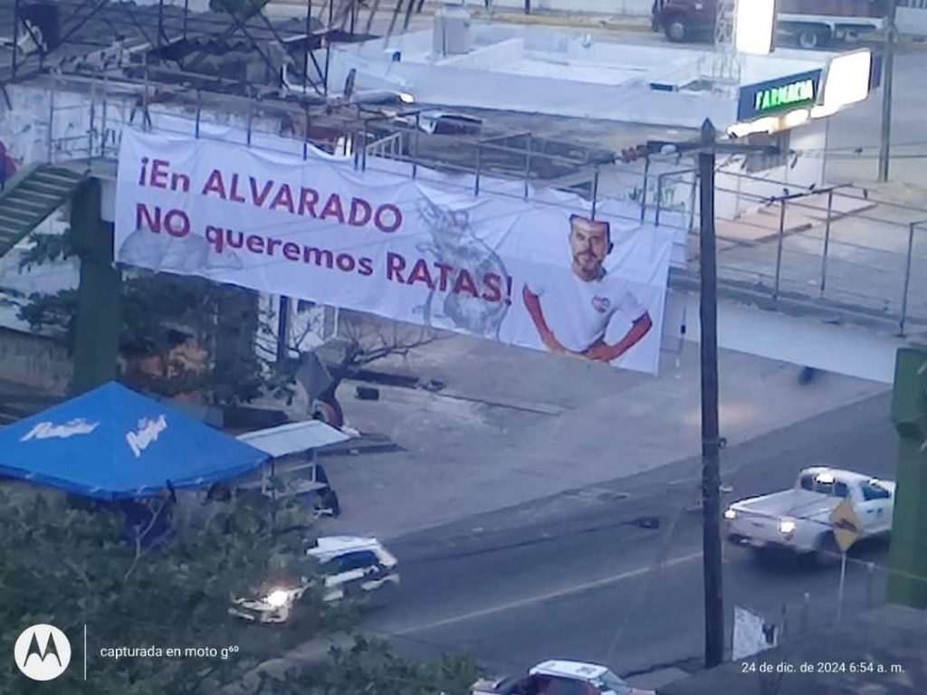 En Alvarado no queremos ratas, le dicen a Polo Deschamps en una manta