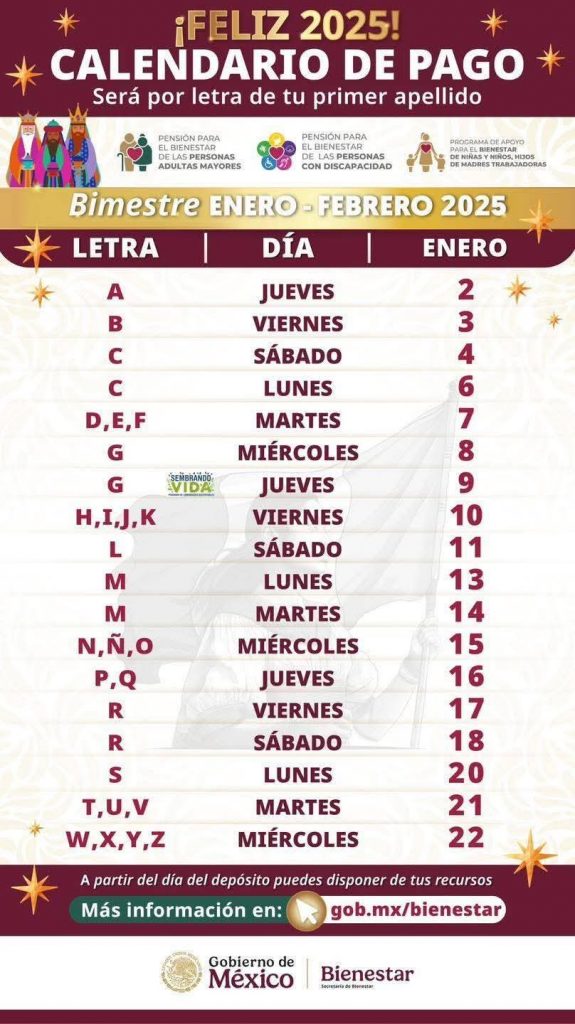 -Los pagos se dispersarán del 2 al 22 de enero de 2025