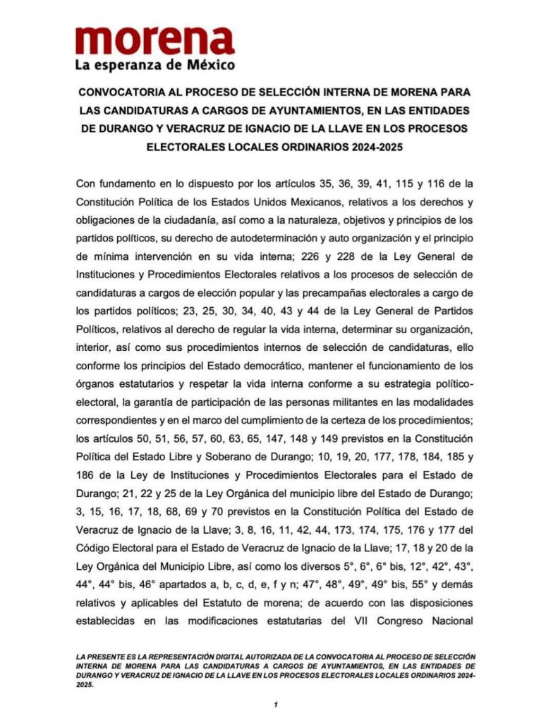 Mañana inicia la inscripción de aspirantes de Morena a las alcaldías del Estado de Veracruz para el proceso electoral municipal 2025.