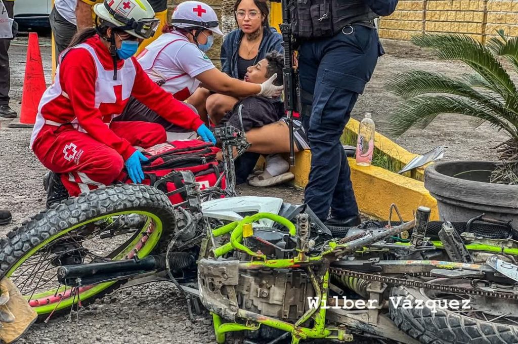 Esta mañana un joven motociclista se dirigía a su partido de fútbol cuando lo embistió una camioneta turística sobre la salida del fraccionamiento Hacienda Sotavento, quedando mal herido de su pierna izquierda, unidades de emergencia lo trasladaron a un hospital.