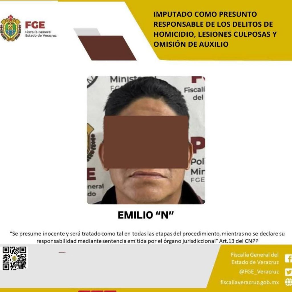 Veracruz, Ver., 22 de enero del 2025.-La Fiscalía General del Estado, informa que, la Fiscalía Regional Veracruz realizó imputación en contra de Emilio “N” como probable responsable de los delitos de homicidio cometido en agravio de la víctima A.H.R., lesiones culposas y omisión de auxilio en agravio de las personas lesionadas.