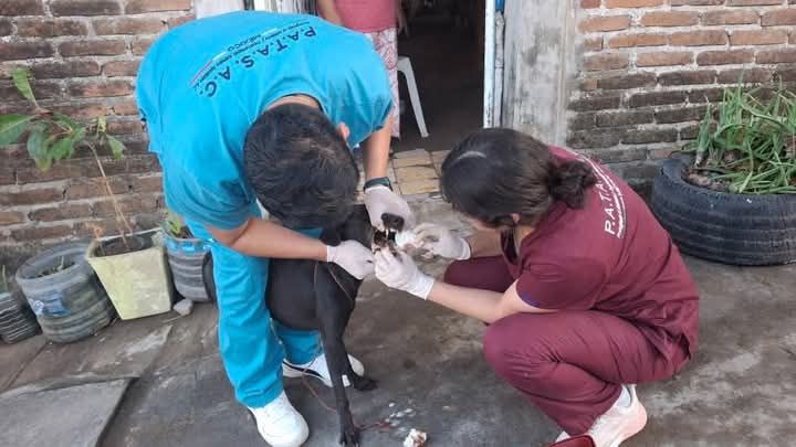 La asociación civil “Patas” que preside Alfredo Fernández Guzmán llegó hasta el lugar de los hechos porque alguien que conoce su trabajo altruista a favor de los animales le llamó al ver lo que sucedía. Fernández Guzmán llegó acompañado de unos médicos veterinarios quienes ayudaron al perrito al que le cortaron su lengua.