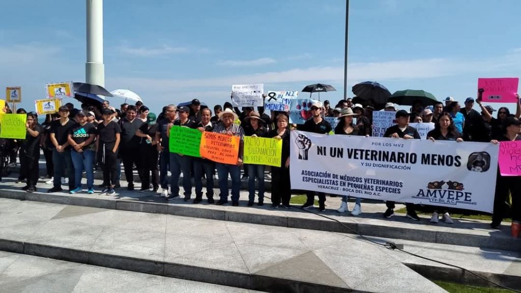 Médicos veterinarios de Veracruz se manifestaron para exigir respeto y la dignificación de su profesión ante las agresiones y amenazas que han sufrido de parte de clientes irresponsables que los responsabilizan por la muerte de sus mascotas.