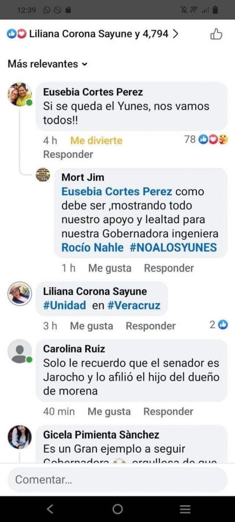 A través de sus redes sociales, la funcionaria estatal posteó: “si se queda el Yunes, nos vamos todos” al tiempo de apoyar la petición de la gobernadora Norma Rocío Nahle García para que la Comisión de Honestidad y Justicia realice el proceso de revisión de la solicitud del ex panista.