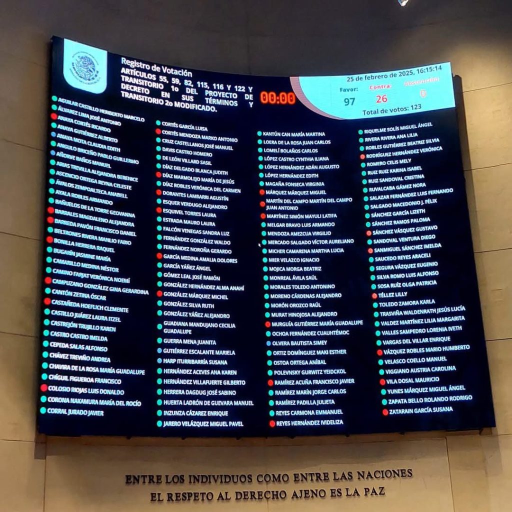 Senado aprueba reforma contra reelección y nepotismo electoral; entra en vigor en 2030