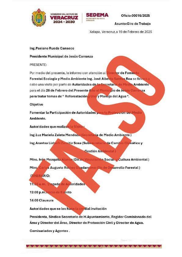 Xalapa, Ver., martes 25 de febrero de 2025.- La Secretaría de Medio Ambiente (Sedema) informa que se han detectado intentos de extorsión en los que personas ajenas a la institución se hacen pasar por funcionarios para solicitar pagos indebidos a cambio de trámites o permisos ambientales.