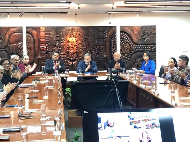 Ante el rector Martín Aguilar Sánchez, el secretario del Trabajo, Previsión Social y Productividad (STPSyP), Luis Arturo Santiago Martínez y de la titular del Centro Estatal de Conciliación y Arbitraje (CECOL) Nayeli Landa Gómez; agradeció el esfuerzo para resolver la problemática que se había rezagado en la Universidad.