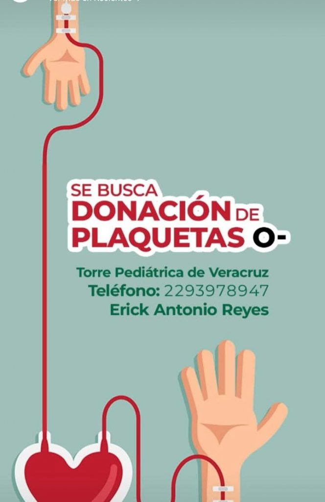 El adolescente lleva ya varios años luchando contra la leucemia y actualmente ha tenido una recaída importante en su salud, por lo que necesita de dicha donación para poder continuar su tratamiento, por lo que los interesados en ayudarle pueden contactarse al número telefónico 2293978947 para mayores informes.