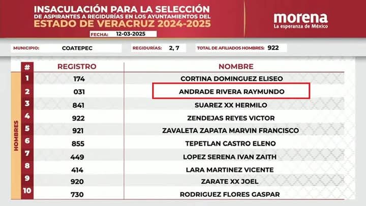 *En la tómbola de MORENA, alcalde de Coatepec, Raymundo Andrade se ubica en la segunda posición para una regiduría