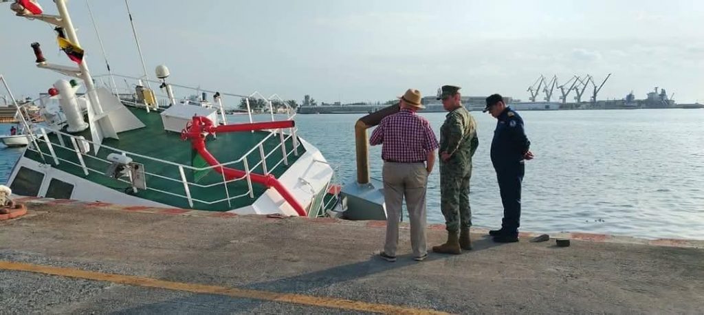 H. Veracruz, Ver. – La Secretaría de Marina informa que personal perteneciente a la Primera Región Naval, en coordinación con la Administración del Sistema Portuario Nacional (ASIPONA) Veracruz y la Capitanía de Puerto Regional de Veracruz, llevaron a cabo acciones de protección al medio ambiente marino después del hundimiento del remolcador “Provincia del Azuay” de bandera extranjera, ocurrido hoy, el cual se encontraba atracado en el muelle número 2 lado este, ubicado en el interior del Recinto Portuario.