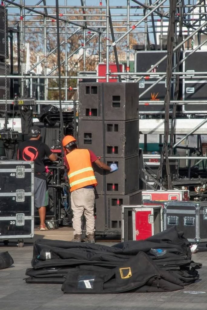 Pantallas de alto formato, miles de luces en escena, 30 tráilers de producción y un histórico número de pirotecnia es lo que están montando más de 100 personas que trabajan entre iluminadores, técnicos e ingenieros.