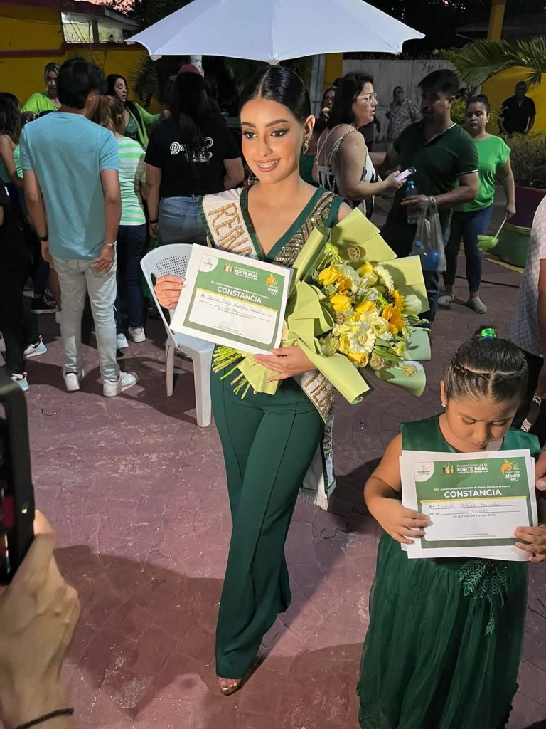 - Reina de la Feria del Mango 2025, Danna Paola Morga Carvajal, de El Tejar, distintivo Verde.