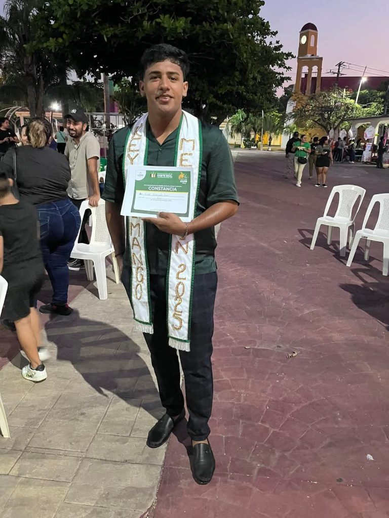 - Rey, Hanzel Leonel Estrada González, del Fracc. Lagos de Puente Moreno. Distintivo Naranja.