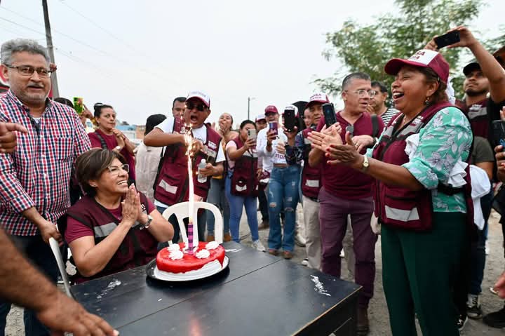 A bordo del “Vocho Móvil” y con muletas, la candidata fue recibida con mucho cariño y aceptación por parte de los ciudadanos, quienes además de cantarle Las Mañanitas a su llegada, se acercaron para estrechar su mano y garantizarle su respaldo en las urnas, este próximo 1 de junio.