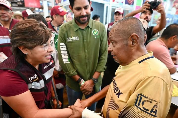 Acompañada por el diputado federal Javier Herrera Borunda, del PVEM, y la candidata a regidora, Luz del Carmen Baxzi García, Rosa María caminó entre los puestos de frutas, verduras, carnicerías, fondas, herbolarias y demás giros tradicionales que dan vida a este centro de abasto, escuchando con atención a quienes, desde hace años, trabajan en condiciones cada vez más precarias por el abandono de las autoridades municipales.