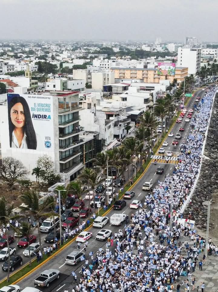 Veracruz, Ver; 25 de mayo de 2025.- Con una caminata desde Villa del Mar a la plaza de la Soberanía, acompañada por el presidente nacional del Partido Acción Nacional, Jorge Romero; el senador Ricardo Anaya, Xóchitl Galvéz y Santiago Taboada, Indira Rosales San Román, candidata del Partido Acción Nacional (PAN) a la presidencia municipal de Veracruz, concluyó este domingo su campaña tal y como la inició: cerca de la gente, caminando a su lado y escuchando sus solicitudes y necesidades.