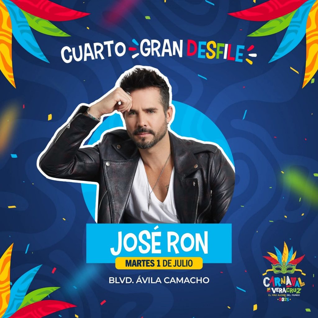 Veracruz, Veracruz, 20 de junio 2025.- El actor de cine, teatro y televisión José Ron estará presente en el carnaval de Veracruz “El más alegre del mundo” que se realizará del 26 de junio al 2 de julio.