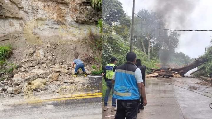 En Papantla una barda colaps贸 en la calle Francisco Villa y en la carretera a Poza Rica, se registr贸 un derrumbe y ca铆da de rocas.