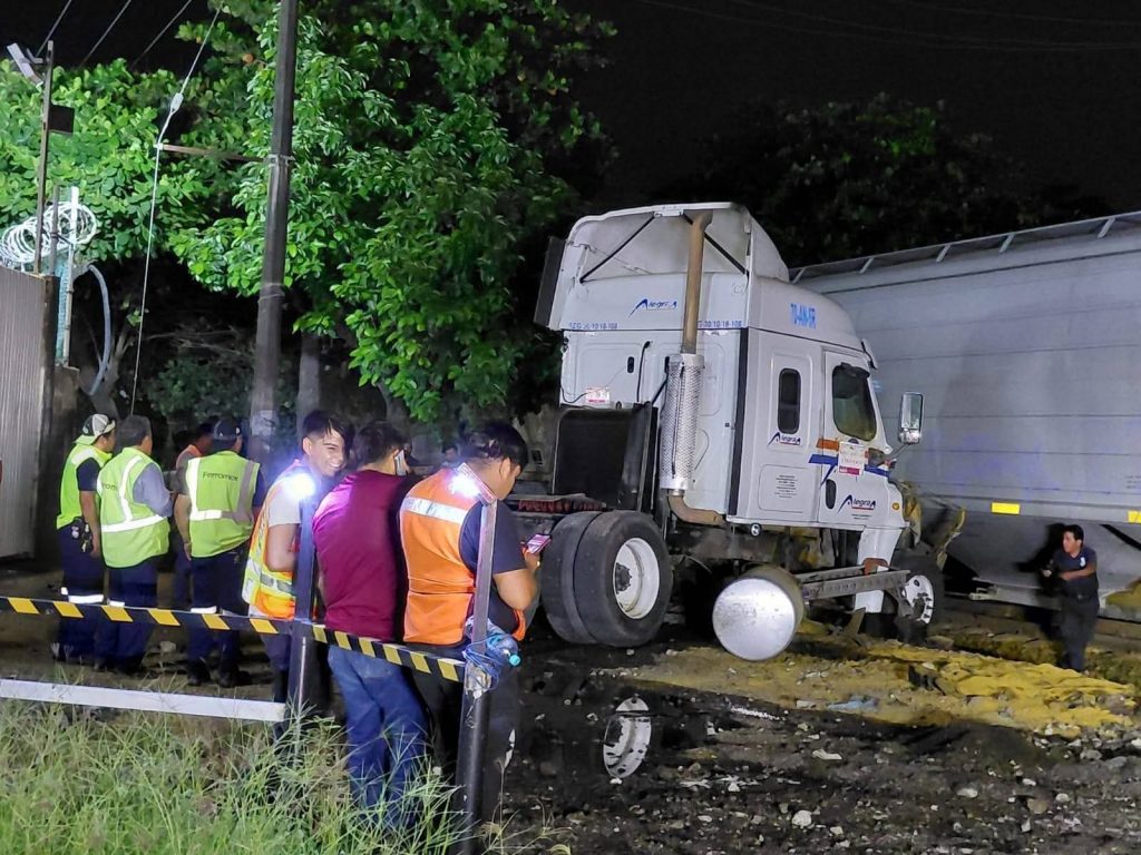 Un #tráiler que intentó ganarle el paso al #tren fue embestido a la altura de la empresa #TenarisTamsa, en la zona poniente de #Veracruz