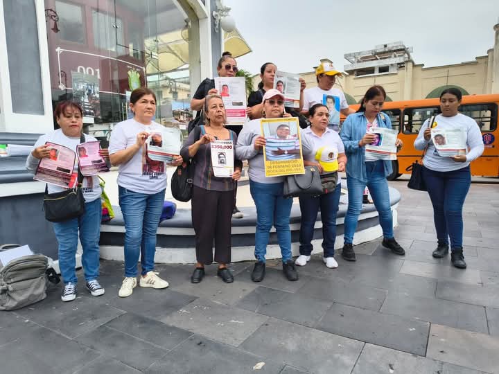 Las madres buscadoras se dieron a la tarea de colocar en la vía pública lonas y cartelones con imágenes y datos de sus seres queridos desaparecidos.