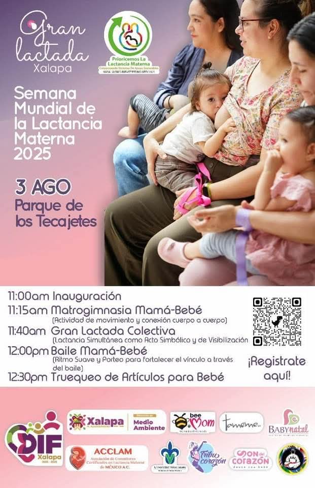 Se convocará a un grupo de madres que practican la lactancia materna exclusiva, mixta o diferida, para amamantar de manera colectiva durante un minuto, en un gesto simbólico de unidad y apoyo a la niñez xalapeña.