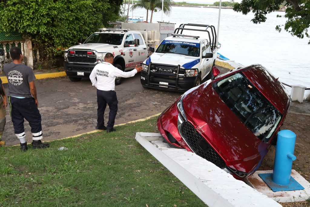 FOTO | Un #vehículo en el que viajaban #jóvenes en aparente estado de #ebriedad se accidentó en los alrededores del #palaciomunicipal de #BocadelRío.