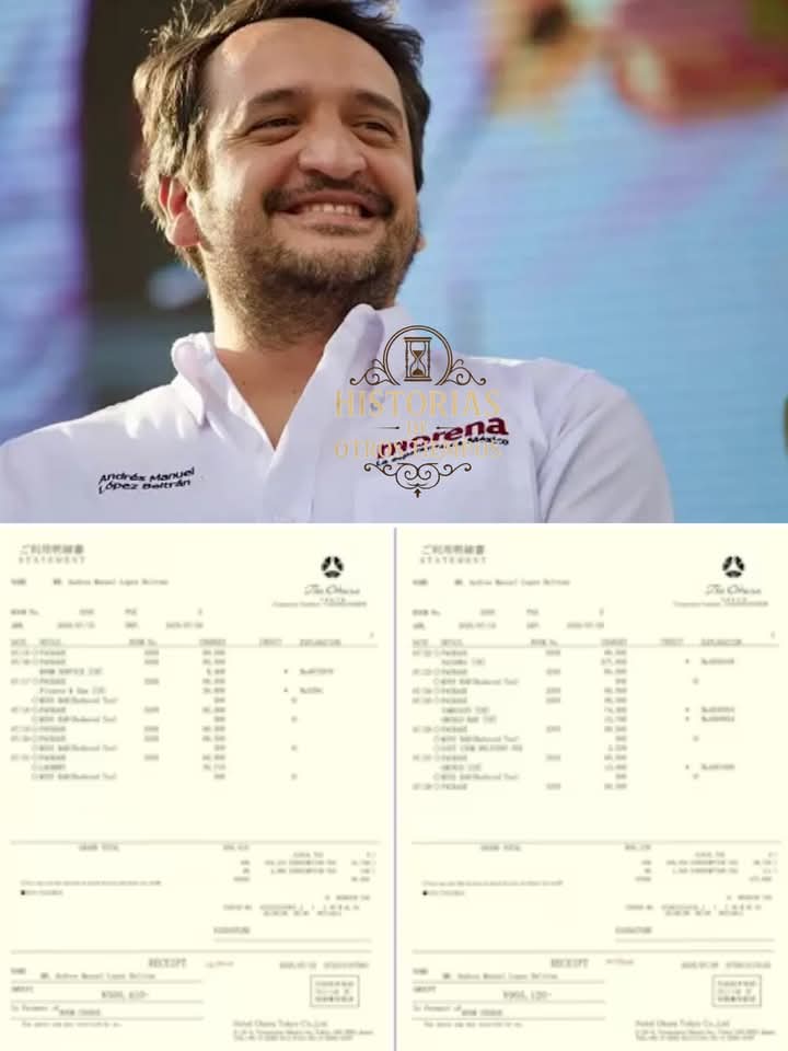 Aristegui Noticias reveló facturas del hotel The Okura Tokyo que exponen los gastos que Andy López Beltrán realizó durante sus vacaciones en Japón, donde permaneció 14 días alojado en la suite 3205, uno de los complejos más exclusivos de Tokio.