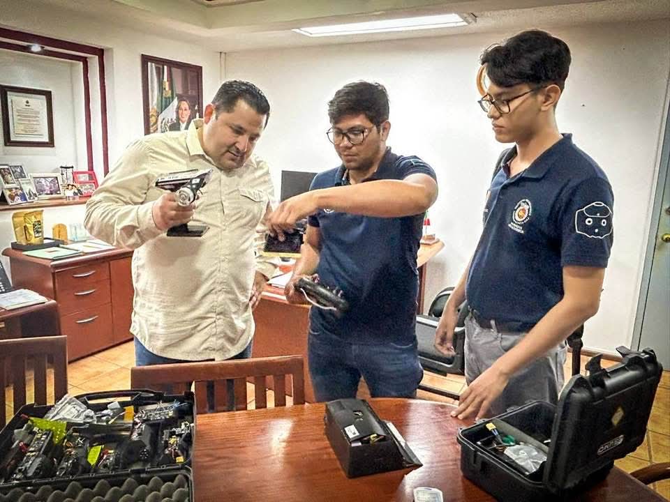Se trata de Martín de Jesús Luna, Diego Rosas Oropeza y Gabriel Hernández Cruz, quienes se reunieron con el subsecretario de Educación Media Superior y Superior, David Agustín Jiménez Rojas, a quien le presentaron el proyecto con el cual participaron y ganaron.