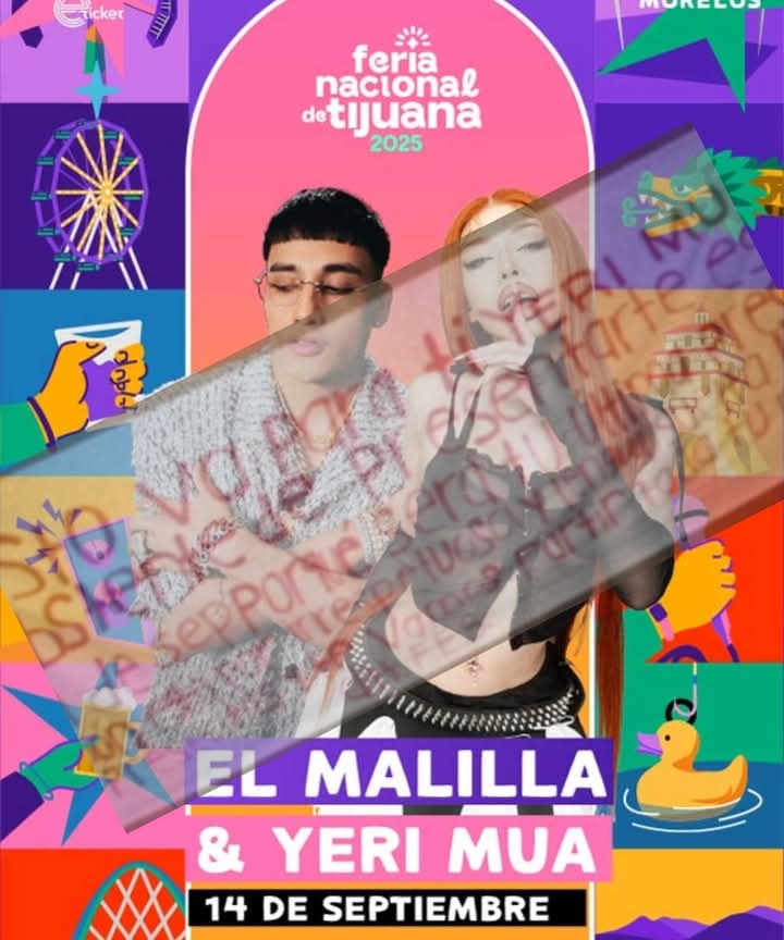 La presentación de Yeri Mua, en compañía del cantante y compositor El Malilla, está prevista para el 14 de septiembre de 2025 en el Teatro del Pueblo, en el marco de Feria de Tijuana que se llevará a cabo en el Parque Morelos.