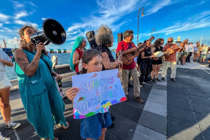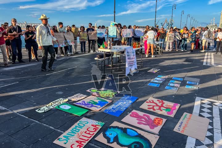 Asociaciones civiles y ciudadanía, realizan manifestación en defensa de los arrecifes y en contra de la ampliación del Puerto. Se concentran en macroplaza del puerto de Veracruz, realizando actividades artísticas y con pancartas en pro de la vida marina.