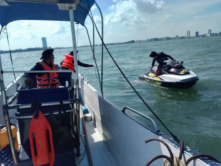 Boca del Río, Ver.- Elementos de la Unidad Marítima de Policía Estatal apoyó este domingo a un joven tras haber sido arrastrado mar adentro en una moto acuática, luego de que ésta presentara una falla mecánica. El joven fue puesto a salvo en tierra firme sin incidentes mayores, sólo el susto que se llevó al verse varado en el mar. #rescate #BocaDelRio #Veracruz #motoacuatica #SSPVeracruz