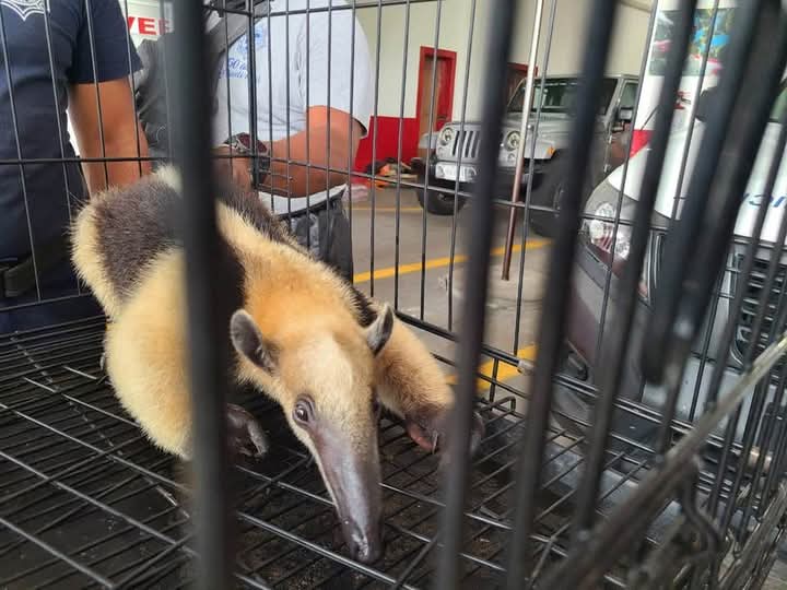 Resguarda Bomberos de Veracruz a oso hormiguero en presunto cautiverio
