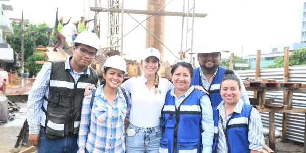 La alcaldesa Paty Lobeira supervisa la construcción del nuevo puente peatonal en la avenida Cuauhtémoc frente al IMSS