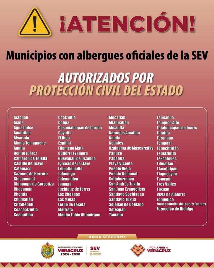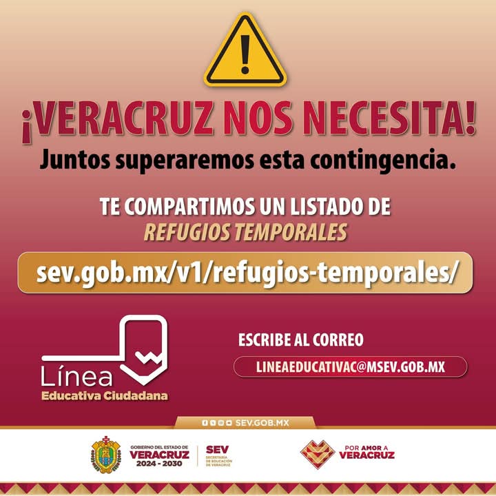 Consulta la lista aquí 👉 https://www.sev.gob.mx/v1/refugios-temporales/