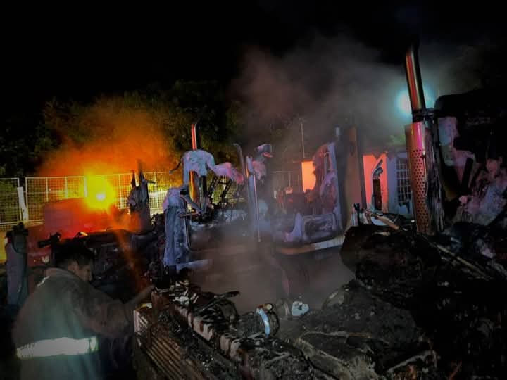 Acayucan, Ver.- La madrugada de este lunes 13 de octubre dos tractocamiones de la empresa TransportesTelfra fueron incendiados al interior de sus instalaciones.