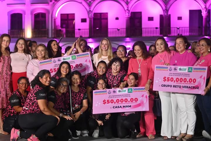 El encendido rosa busca rendir homenaje a quienes han librado esta batalla y fortalecer el mensaje de solidaridad hacia las familias veracruzanas. 💗✨