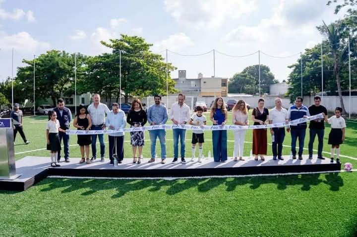 “No hay precedente de la magnitud de los trabajos realizados en beneficio de la mejora de la infraestructura escolar. Al fomento deportivo con la construcción de esta hermosa cancha de campo sintético, el cual vinculará a la comunidad educativa hacia una vida saludable, de sana convivencia y de fomento deportivo.