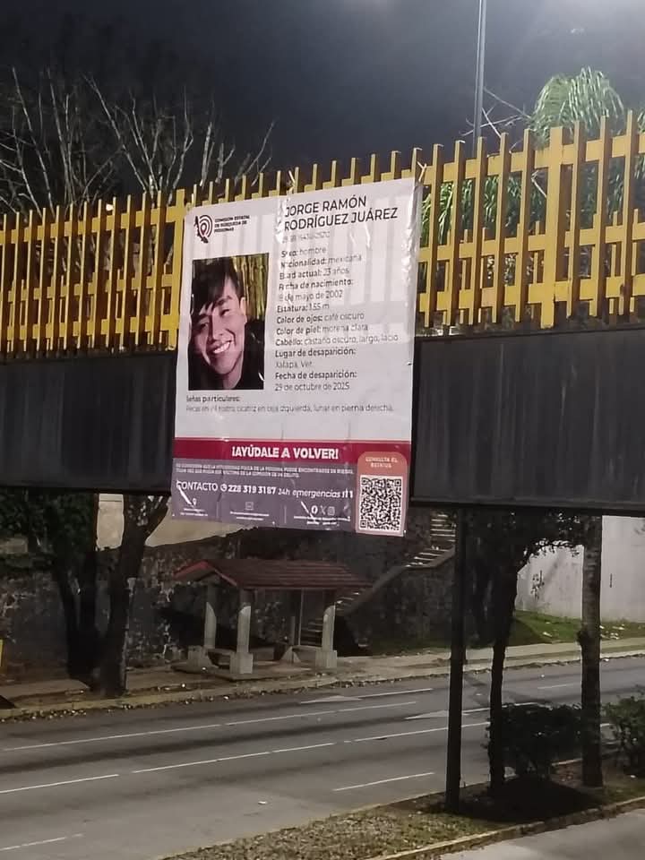 Jorge desapareció el pasado 29 de octubre en Xalapa y hasta la tarde de este viernes no había noticias de él. Tiene 23 años de edad y fue visto por última vez cerca de las 11 de la mañana en Urban Center.