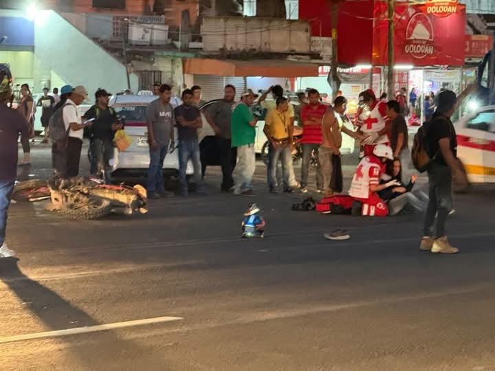 Veracruz, Ver.- La tarde de este sábado se registró un fuerte accidente en la entrada de Tejería, donde al menos dos motociclistas resultaron lesionados luego de un aparatoso choque ocurrido justo en la zona del semáforo.