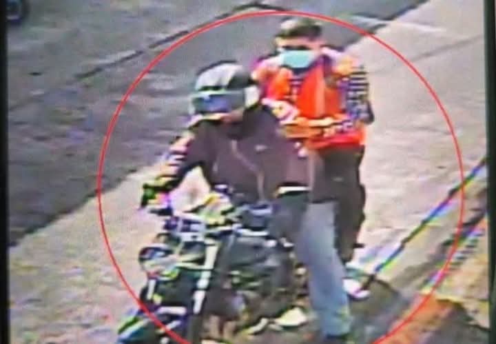 Las cámaras del lugar captaron a ambos: uno vestía camisa de cuadros y chaleco naranja, mientras que el otro llevaba puesta chamarra negra y casco cerrado.