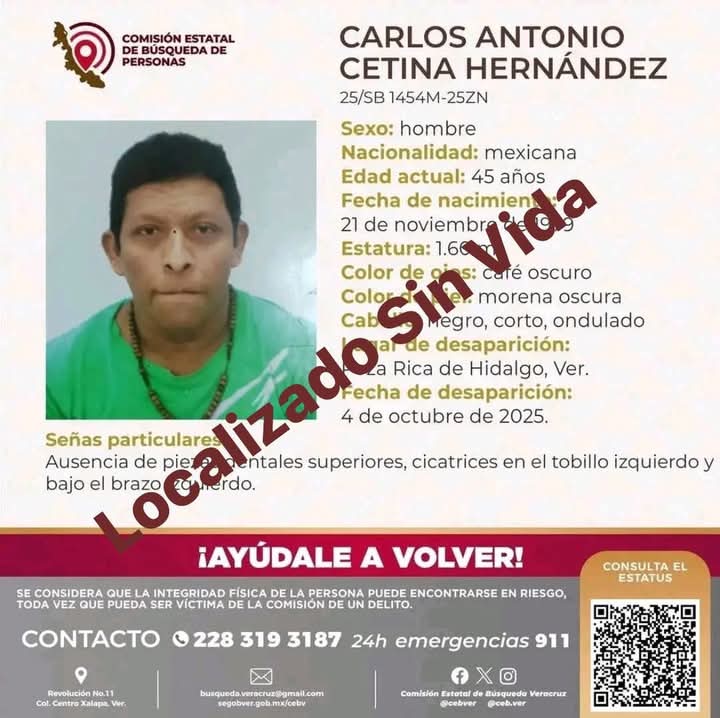 Después de casi dos meses de búsqueda familiares de Carlos Antonio Cetina Hernández de 45 años, conocido como “Kalin”, confirmaron su fallecimiento. El joven había sido reportado como desaparecido desde el pasado 4 de octubre del año actual.