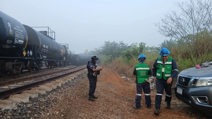 La locomotora jalaba 4 vagones cargados con arena y 3 más con cloro líquido. Las tolvas no se abrieron y aunque mucha arena terminó regada, el cloro no se regó.