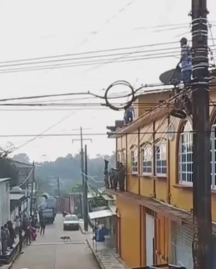 COSOLEACAQUE, VER.- Un hombre quedó colgado de lo alto de una vivienda en la calle Moctezuma y el bulevar de este municipio, esto cuando realizaba trabajos de pintura en el techo, al parecer perdió el equilibrio y quedó suspendido de los cables.
