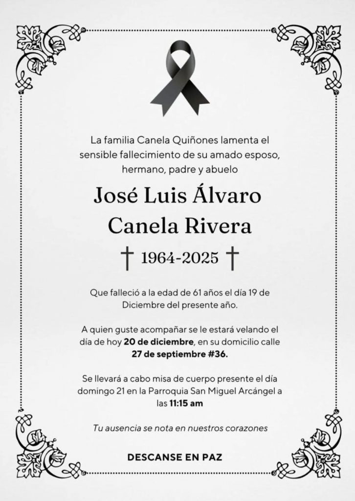 LAS VIGAS,VER..- 😢💔🕊️A través de redes sociales, familiares de José Luis Álvaro Canela Rivera dieron a conocer que, tras varios días internado en el Hospital OMAI de Veracruz, este viernes lamentablemente perdió la vida. 🏥⚠️