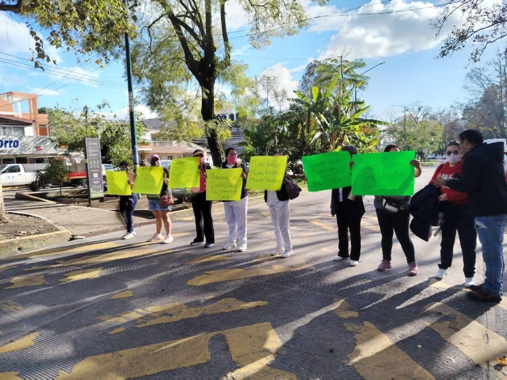 Xalapa, Ver.- Este miércoles, empleados del IMSS- Bienestar se plantaron afuera del Centro de Alta Especialidad (CAE) “Dr. Rafael Lucio”, sobre la avenida Ruiz Cortines, en protesta por la falta de sus pagos, uniformes y otras prestaciones que por ley y desempeño les corresponde.