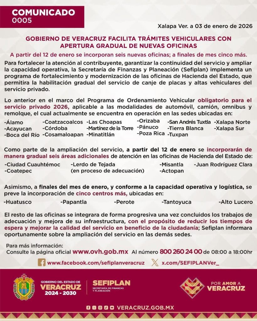 La reciente determinaci贸n de suspender los tr谩mites de emplacamiento vehicular en la Oficina de Hacienda del Estado ubicada en Medell铆n de Bravo representa una decisi贸n preocupante, carente de visi贸n operativa y social, misma que afectar谩 de manera directa a miles de contribuyentes de la regi贸n.