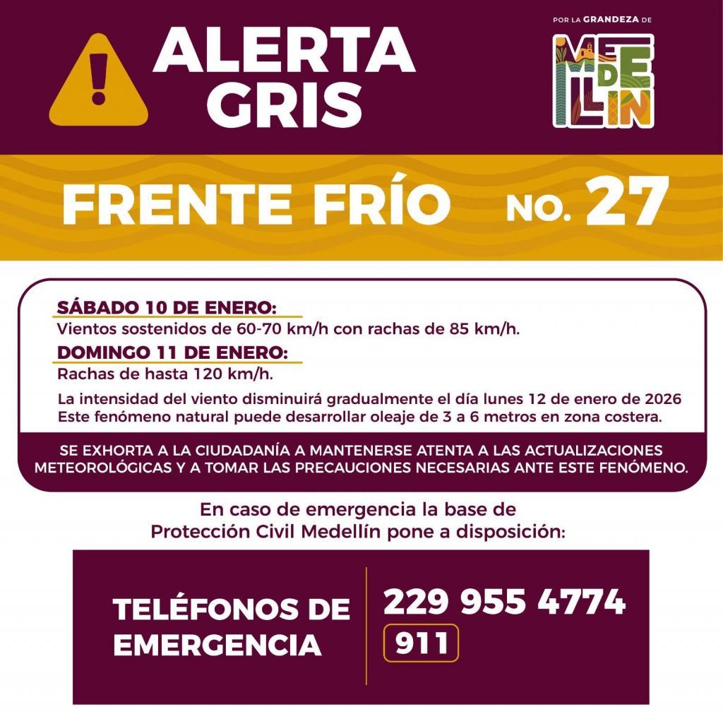 Para este fin de semana se tiene pronosticado el ingreso del Frente Frío número 27, fenómeno que traerá consigo vientos fuertes del norte en la región.